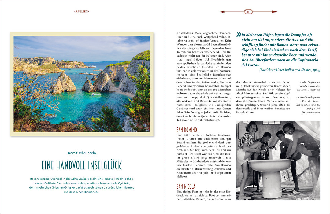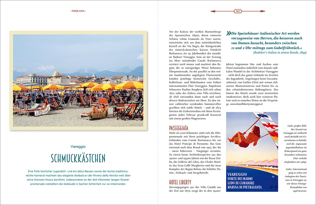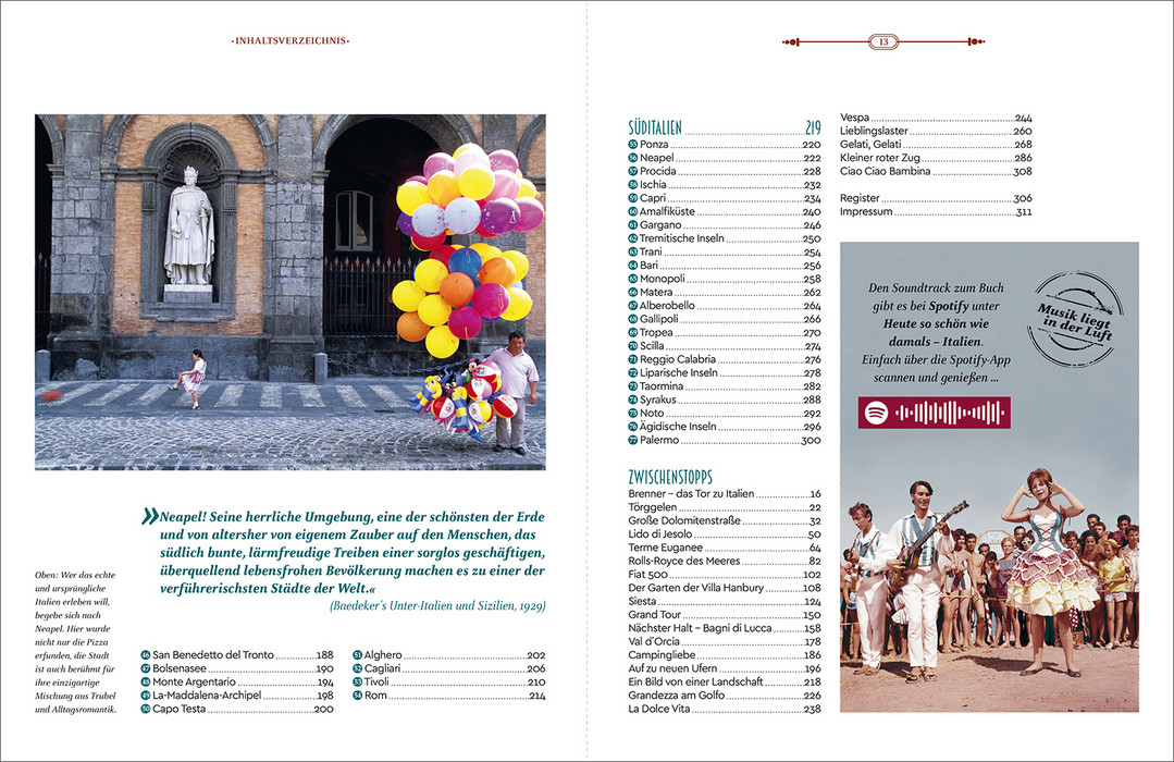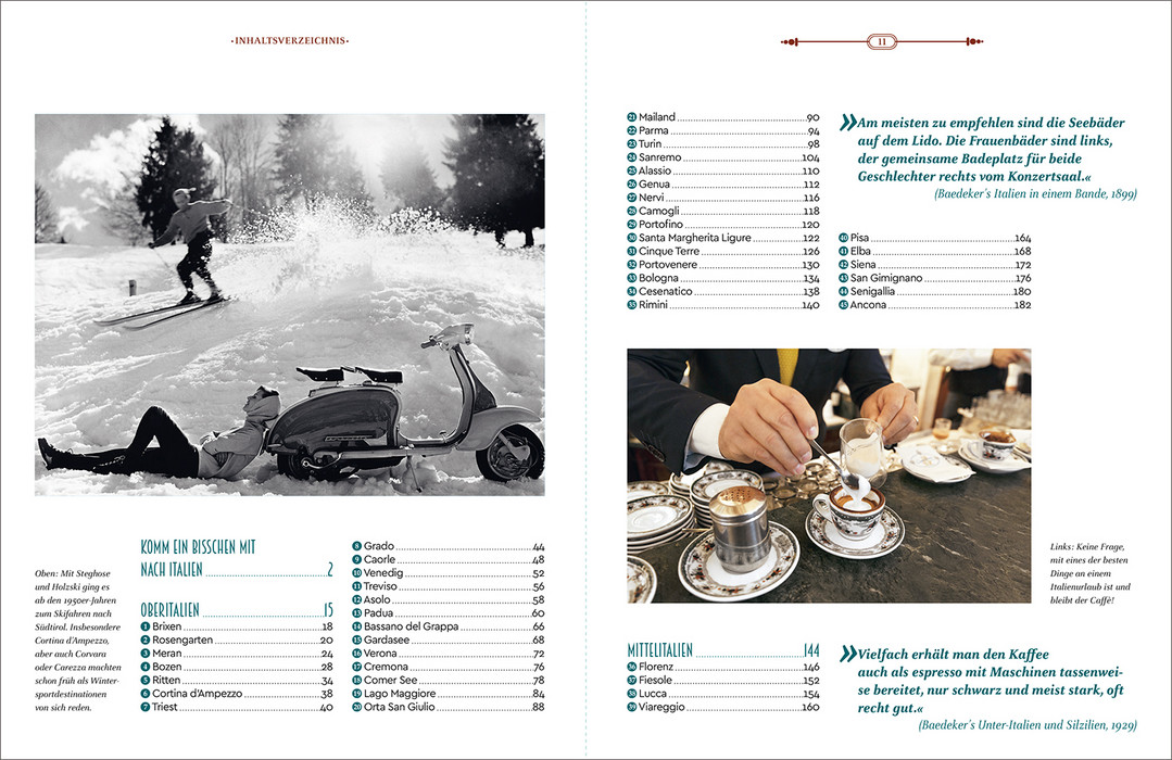 Wie kein anderes Land eroberte Italien ab den 1950er-Jahren die Urlaubsherzen der Deutschen. Ein Sehnsuchtsziel und Füllhorn in Stiefelform. Mit dem VW-Käfer ging es vollbepackt bis unters Dach in das "Land, wo die Zitronen blühen". Insbesondere die Adriaküste, Capri oder das winterliche Cortina d’Ampezzo hatte es den Reisenden angetan, wohingegen Meran, Venedig oder Florenz schon seit Ende des 19. Jahrhunderts Bildungsbürger aus ganz Europa mit ihren Kulturschätzen verzauberten. Dieses Buch begibt sich nicht nun auf Spurensuche zu den Anfängen des Italien-Tourismus, beim Lesen und Blättern kommen "Bella Italia"-Gefühle in Reinform auf. Da würde man am liebsten gleich selbst mit dem Fiat 500 über die Amalfitana knattern.