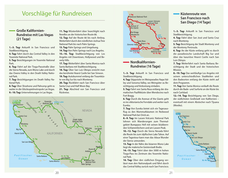 Praktische Tourenvorschläge für Trips durch einzelne Regionen und Rundreisen durch den ganzen Bundesstaat