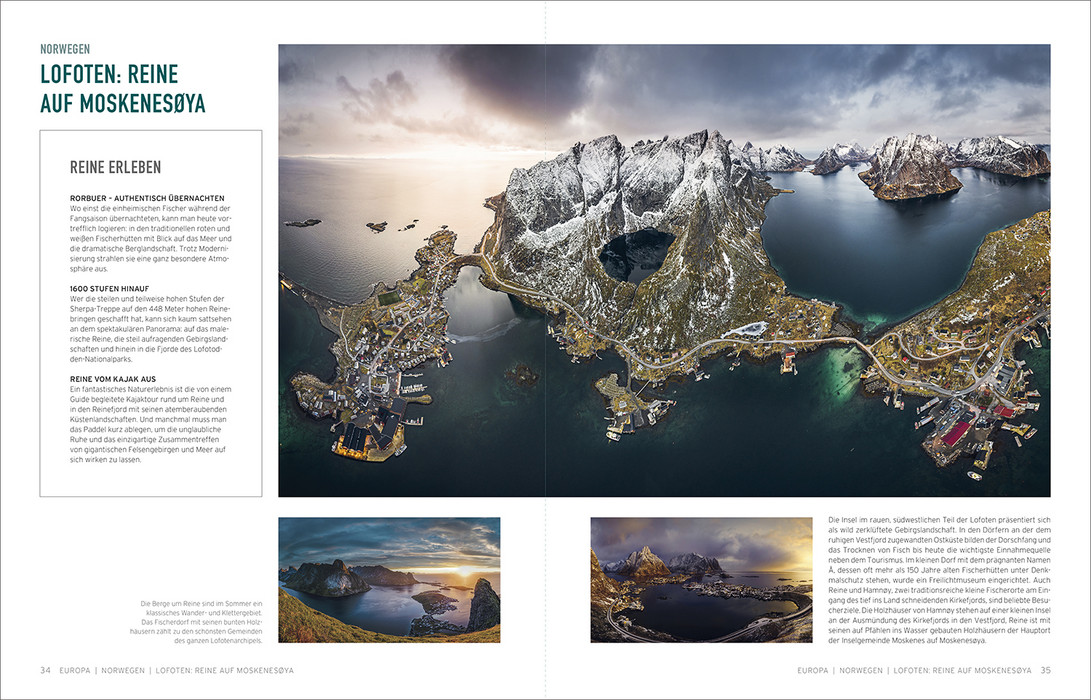 Urgewalt und Paradies – wo Meer und Berge sich berühren Es gibt auf der Welt großartige Zusammentreffen von Bergen und Meeren: Mal sind das die rauen Klippen in Irland oder bizarre Felsformationen an der Algarve in Portugal, mal die grünen Berghänge auf Madeira oder Vulkane auf Hawaii. Exotisch wird es bei großen Sanddünen, die wie sanfte Sandberge in den Himmel ragen und einen starken Kontrast zum Meer bilden, oder den gigantischen Eisbergen in nördlichen Gefilden. Neben spektakulären Fotografien, die die Urgewalt der Elemente einfangen, gibt es in diesem Bildband spannende Informationen zu Naturphänomenen und Tipps zu sehenswerten Entdeckungen.