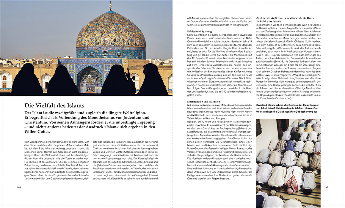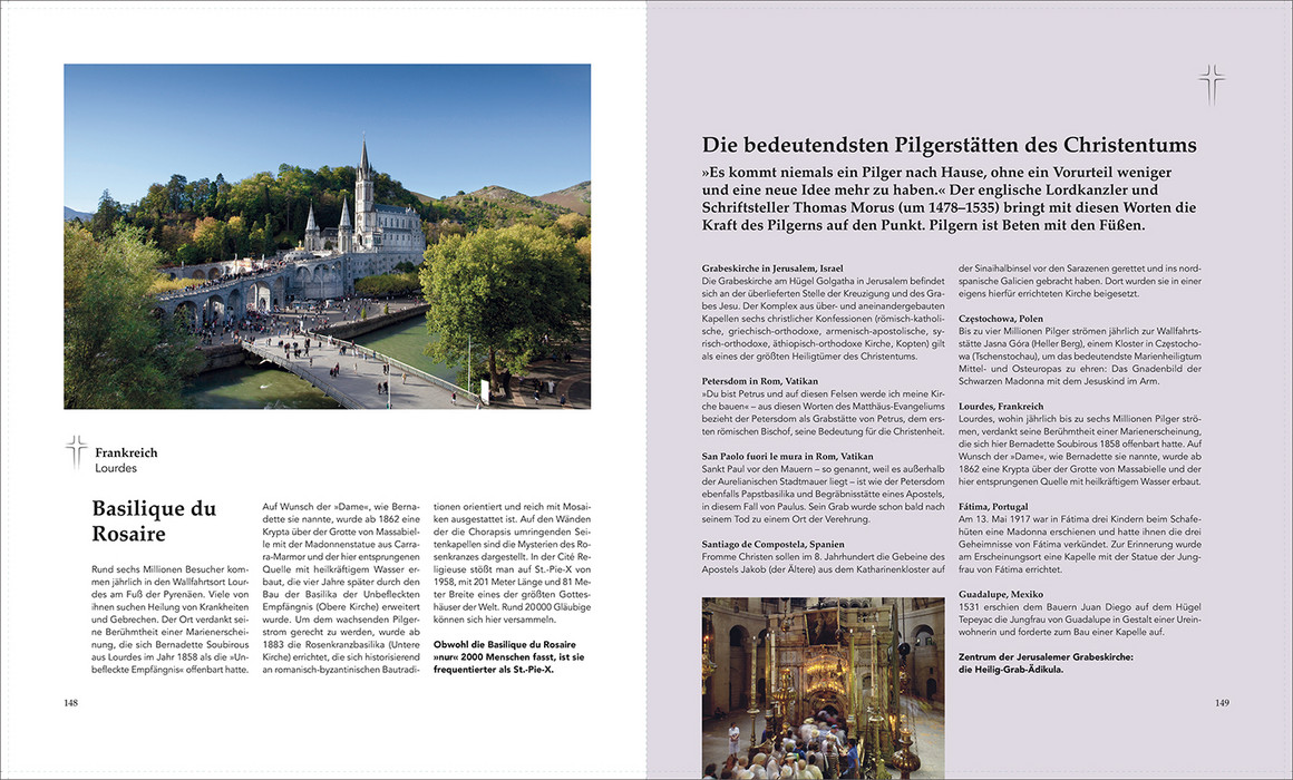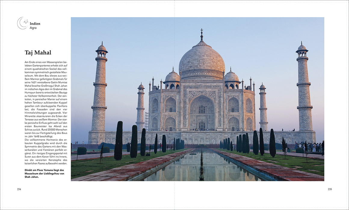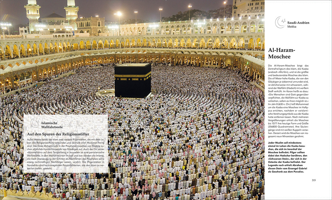 Golden schimmernde Kuppeln, Marmortempel, die von den Spitzen der Berge leuchten, hölzerne Stabkirchen und barocke Kathedralen, in den Himmel aufragende Stupas und Pagoden, reich geschmückte Moscheen, Statuen, Wandbilder und feinziselierte Ornamente – nahezu überall auf der Welt haben Menschen im Dienst der Religion architektonische und künstlerische Meisterwerke in Gestalt monumentaler und prachtvoll ausgestatteter Bauwerke vollbracht. Der Bildband nimmt mit auf eine Reise zu den schönsten Glaubensorten aller Weltreligionen und zeigt die ganze Bandbreite sakraler Architektur.