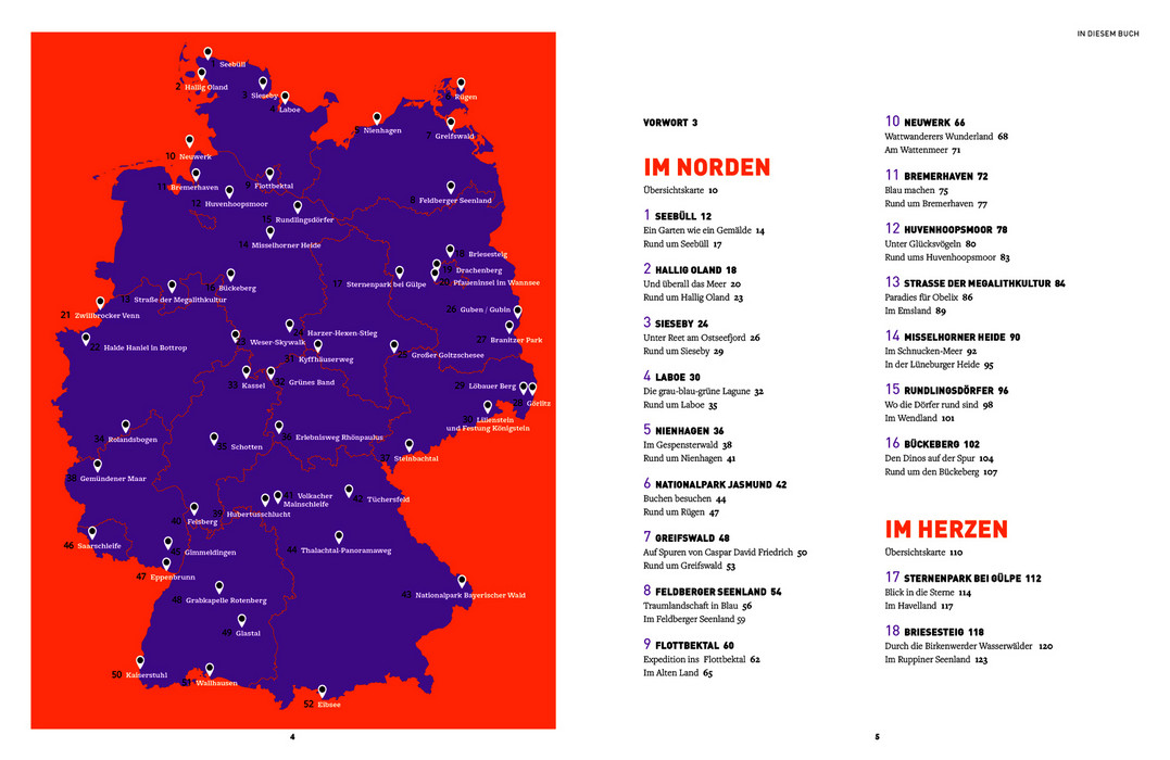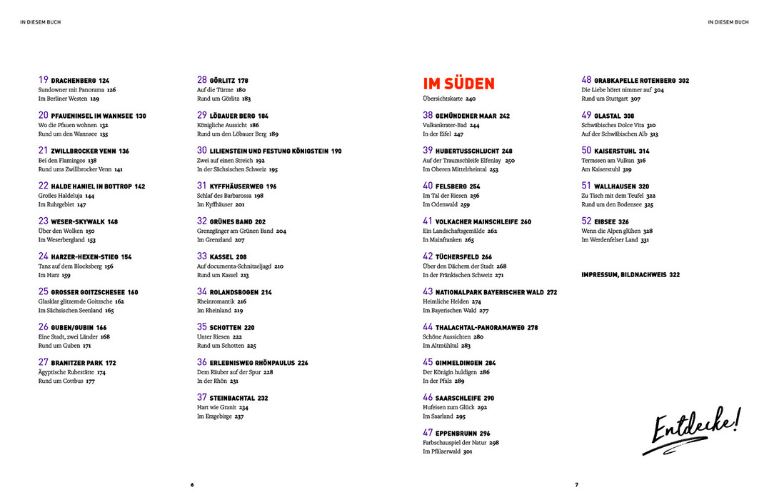 runde Fachwerkdörfer im Wendland oder eine Pyramide in der Oberlausitz: Deutschland steckt voller Naturwunder und Kuriositäten. Auf 52 unterhaltsam geschriebenen Entdeckungstouren lassen sich die faszinierendsten und ungewöhnlichsten Orte zwischen Alpen und Wattenmeer erleben. Ob beim Wandern, Radeln oder Paddeln – auf den abwechslungsreichen Streifzügen durch die Heimat kommt man den kleinen und großen Wundern ganz nah. Zusätzlich gibt es für jede Region fünf Ausflugsideen zu weiteren Besonderheiten in der Nähe. Mit Karten und GPX-Daten zum kostenlosen Herunterladen. Der perfekte Ideengeber für einen Wochenendtrip oder einfach nur eine kurze Auszeit.