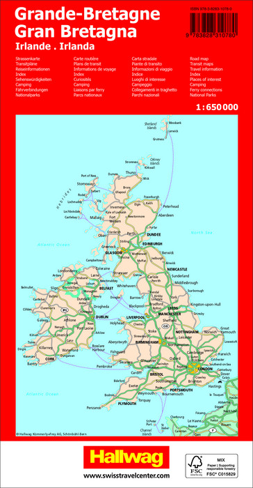 In the Hallwag road map Great Britain - Ireland on a scale of 1:850,000 you will find everything you need for orientation and inspiration.