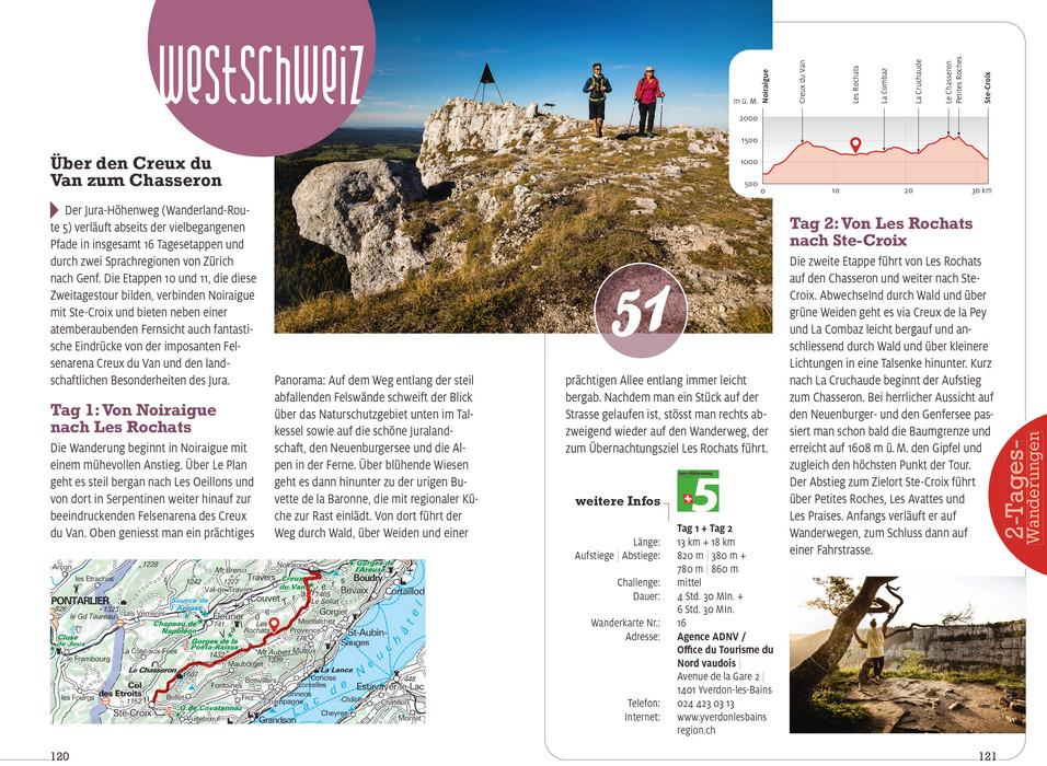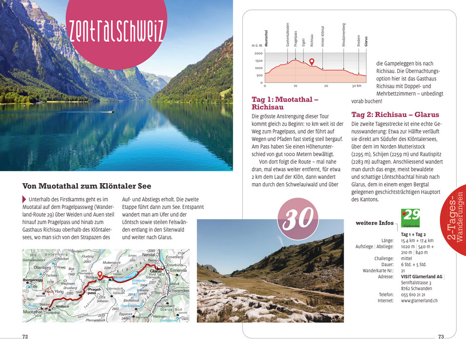 In the Kümmerly+Frey Leisure Guide Experience Switzerland - 2-Day Hikes, you will find suitable tour suggestions with tips and recommendations for your next hiking adventure.