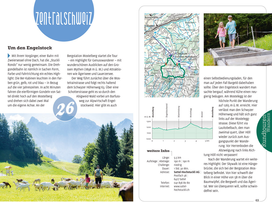 The selected circular tours in this volume take you on 73 spectacular paths through unique landscapes, over blooming alpine meadows or through enchanted forests, promising unforgettable hiking experiences throughout Switzerland. The best part is: you return to the thoughtfully chosen starting point, making it convenient for travel and planning the attractive circular hikes.