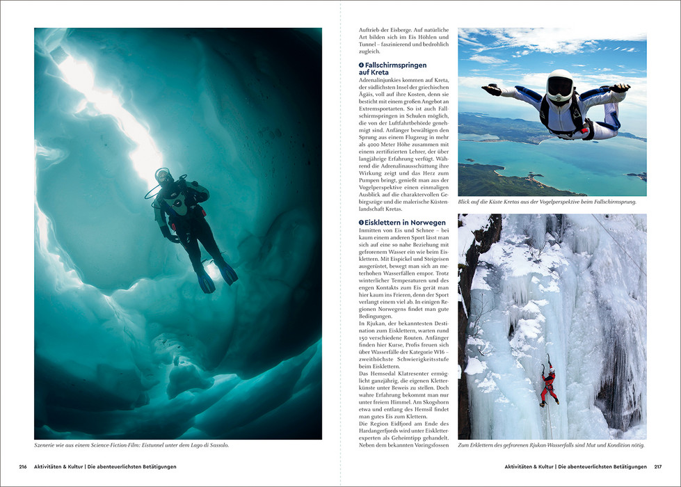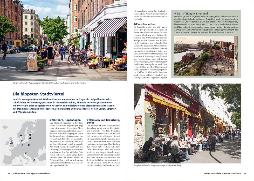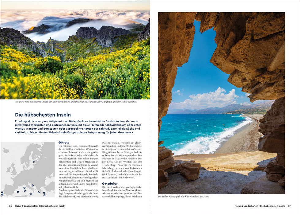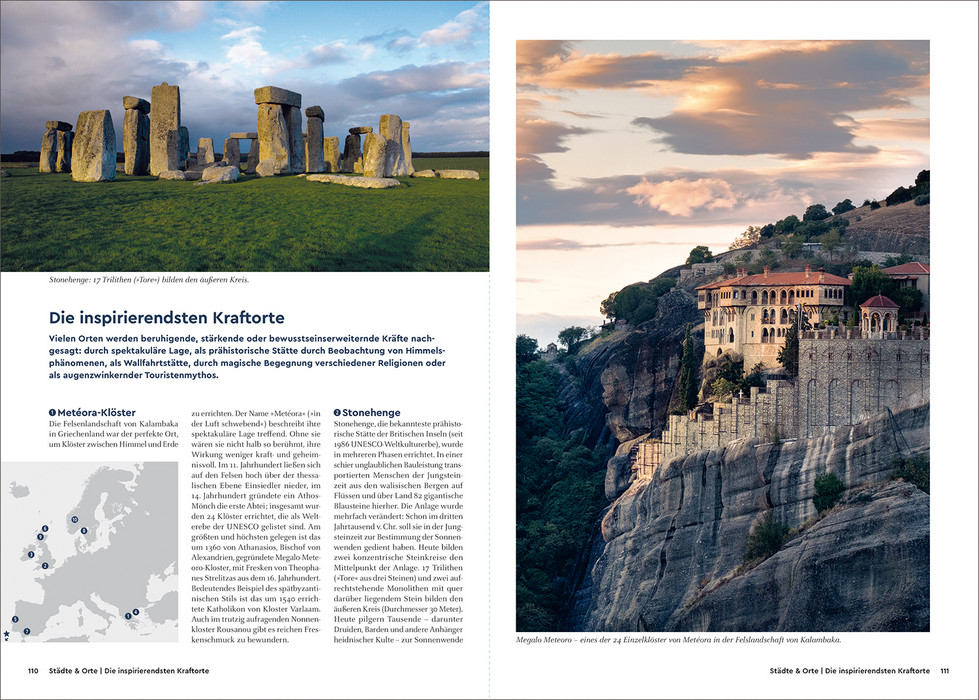 Lust darauf, das wirklich Beste in Europa zu erleben? – ein zwischen rauem Eismeer, Alpen, Atlantik- und Mittelmeerküste. Das Beste davon stellt dieser praktische KUNTH-Bildband vor. Neben in pulsierenden Städten, präsentiert er Örtchen mit besonderem Flair, glasklare Seen, Berge und tiefe Wälder, idyllische Küsten, Strände und Inseln, interessante Landschaften mit Höhlen oder Wasserfällen. Neben Menschen und Tieren mit regionalen oder typischen Eigenarten, Schlössern, Burgen, Kirchen, Klöstern, Museen und Bibliotheken findet man wie schaurige Stätten oder Friedhöfe, aber auch Kraftorte, Plätze zum Sternebeobachten, skurrile Fortbewegungsmittel, exzentrische Feste. Dazu Routen, die die schönsten Ziele erschließen – zu Fuß, per Bike, Fahrrad, Zug oder Boot. In werden so in Wort und Bild jeweils die gekürt und mit vielen angereichert.