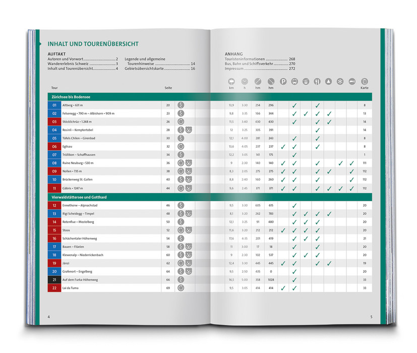 DIE SCHÖNSTEN WANDERTOUREN der Schweiz erleben! Die 100 Touren dieses Wanderführers führen von einer aussichtsreichen Wanderung entlang des Bodensees im Osten bis ins grünste der Walliser Seitentäler im Westen, von einer Route entlang des Rheinufers mit optionaler Schiffsrückreise im Norden bis auf den südlichsten Aussichtsberg des Tessins – Zahnradbahnfahrt inklusive. Jede Tour wird mit Karte, Wanderinfos, Einkehrmöglichkeiten und GPS-Daten zum Download angeboten. Also Wanderschuhe schnüren und auf geht’s in die Schweizer Bergwelt!