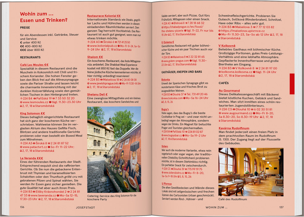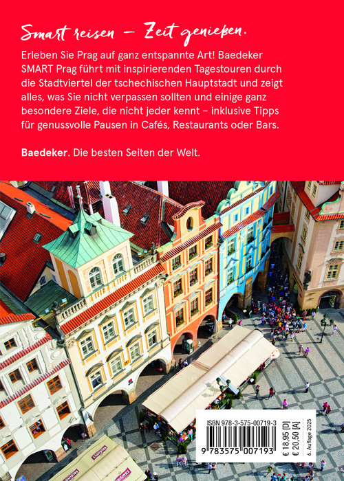 Historische Residenzstadt Prag entspannt entdecken mit einem Reiseführer wie eine beste Freundin Als wenn er genau wüsste, was Ihnen gefällt – planen Sie morgens schnell und unkompliziert den Tag mit dem Baedeker SMART Reiseführer. Beginnen Sie Ihren Urlaub in Prag doch direkt mit Pariser Flair im jüdischen Prag. Erkunden Sie gut ausgeschlafen Josefov, das jüdische Viertel mit all seinen spannenden und traditionsreichen Synagogen. Wie wäre es mit einer »kleinen Pause«? Entspannen Sie zwischendrin im Café Franz Kafka, bevor Sie sich zum alten jüdischen Friedhof aufmachen und danach noch auf der luxuriösen Pariser Straße bummeln. Oder erkunden Sie den Altstädter Platz, überqueren Sie die Moldau über die berühmte Karlsbrücke und lassen Sie sich von der böhmischen Küche überzeugen. Mit unseren inspirierenden Ideen sorgen wir für eine entspannte Urlaubsplanung, führen Sie vorbei an einzigartiger Architektur am Wenzelsplatz, zeigen Ihnen wo Sie traditionell gebrautes Bier trinken können und machen Ihr Sightseeing in Prag zum unvergesslichen Erlebnis. Dieser Reiseführer ist perfekt für Sie geeignet, wenn Sie … … besondere Orte kennenlernen möchten und auf der Suche nach außergewöhnlichen Momenten sind |