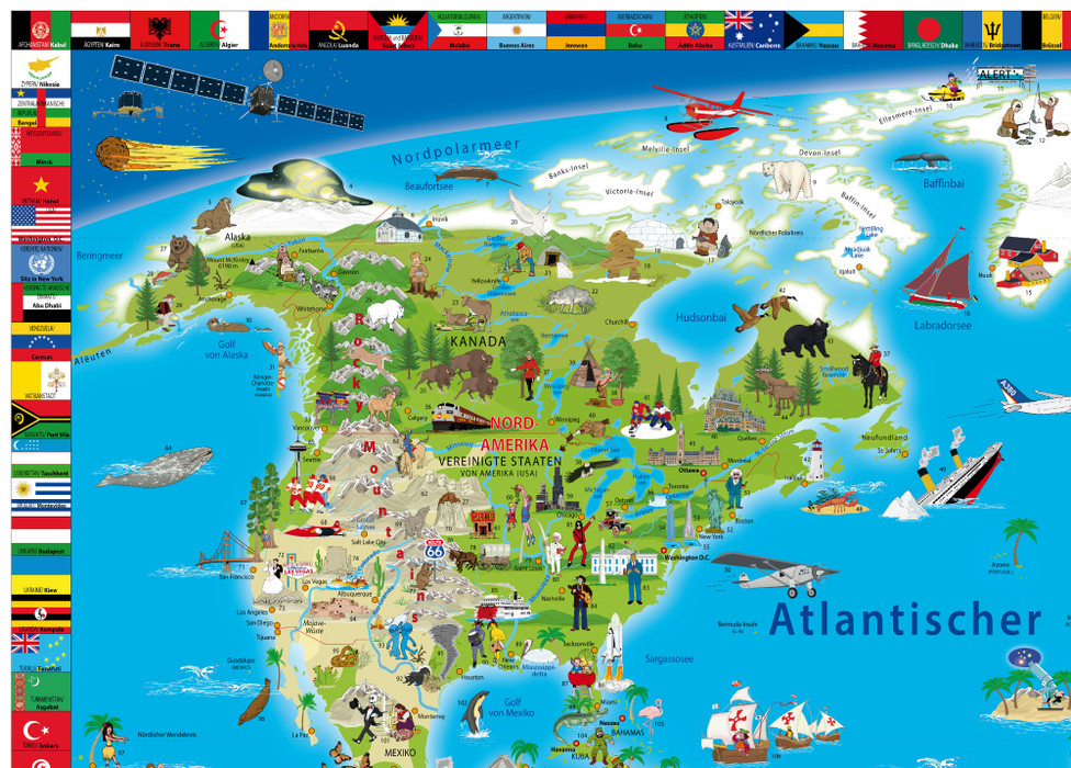 Die neue illustrierte Weltkarte für Kinder und Erwachsene begeistert, ist aktuell, unterhaltsam, informativ und prall gefüllt mit kurzweiligen und doch lehrreichen Fakten. Fast 500 Legendenpunkte sind kinderaugenfreundlich im unteren Kartendrittel besprochen. Auch Erwachsene entdecken immer wieder unterschiedliche Schwerpunkte auf diesem qulitativ hochwertigen Poster. Egal, ob im Kinderzimmer, Büro, Klassen-oder Praxisraum: Eine tolle Bereicherung für jede Wand und ein absolut dekorativer Hingucker.