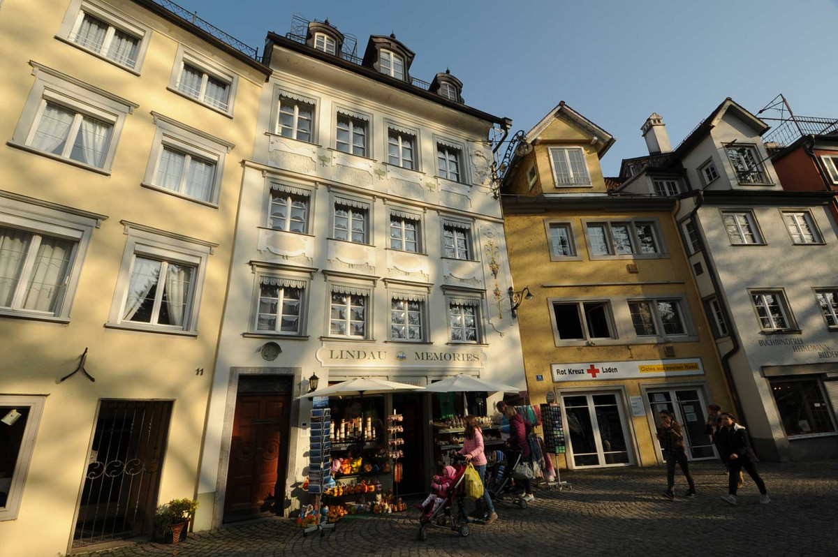 The historic old town of Lindau, the charming little town in the Bavarian part of Lake Constance, stands on an island in the triangle of Germany, Austria and Switzerland. It can be reached via a 150-metre-long pier. Many postcard motifs can be seen here in a very small space. For example the harbour entrance with the lighthouse built in 1856 on one side and the stone Bavarian lion on the other, the Mangturm covered with coloured bricks, the Thebsturm or the Old Town Hall from 1422 decorated with splendid facade paintings. The many venerable patrician houses on Maximilianstrasse are reminiscent of the glorious times of Lindaus as a free imperial city.
