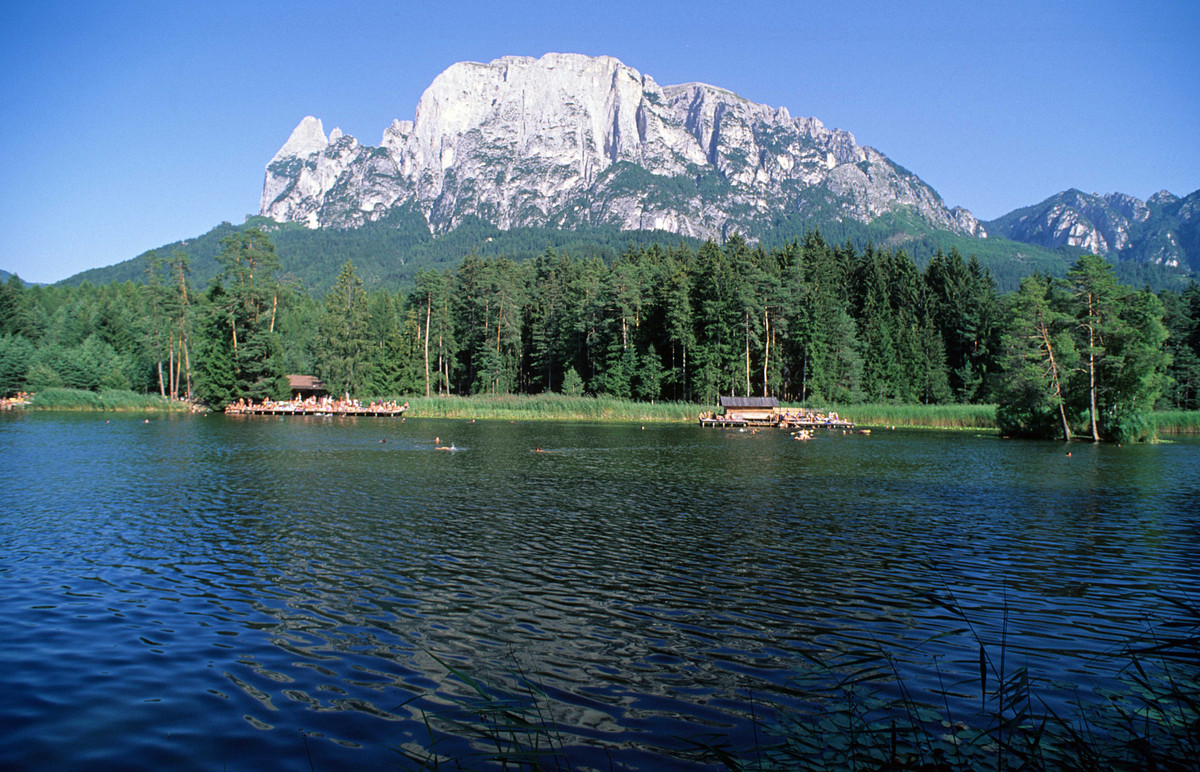 From the Camping Seiser Alm you can easily reach the idyllic lake Völser Weiher. It is one of the cleanest bathing lakes in Italy and lies at about 1000 metres above sea level at the foot of the Sciliar.