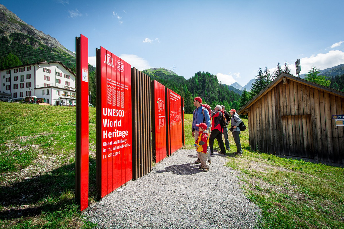 On the section from Preda down to Bergün there is the adventure trail, a two and a half hour hike with information about the most spectacular railway line in the world. Information boards convey exciting current and historical information and give an insight into the world of railways, technology, culture and everyday life of the Rhaetian Railway - and the people of the Albula Valley. Non-railway fanatics are also enthusiastic here, and family fathers explain to their boys (and girls) how a helical tunnel works with perfectly understandable arm movements.