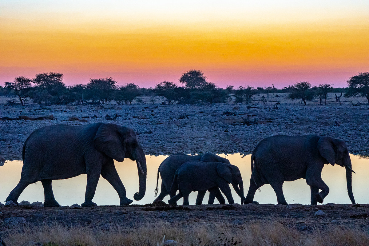 Past the Spitzkoppe, the Matterhorn of Namibia and through the Erongo Mountains, the biggest highlight of the South West African country awaits you in the north. The Etosha National Park - half the size of Switzerland - is one of Africa's wildest nature reserves. At the heart of the reserve is the Etosha Pan, an encrusted salt plain that can best be admired at Etosha Lookout: a white-lit plain that merges with the blue of the sky on the horizon. Hardly anywhere else in Africa can you find such large herds of animals: According to the latest censuses, around 20,000 of the dainty springboks live in the park alone, 6,000 steppe zebras and 4,000 wildebeests. There are also 2600 elephants, 2000 giraffes, 800 oryx antelopes, around 300 rhinos and just as many lions. With a bit of luck you will meet hyenas, cheetahs and leopards on a safari, which you can do alone without any problems and under consideration of the park rules. If possible, spend the night in the park. My recommendation: the Okaukuejo Camp. This is the only way to watch herds of elephants, giraffes and rhinoceroses go to the waterhole at dusk to drink and cool down.