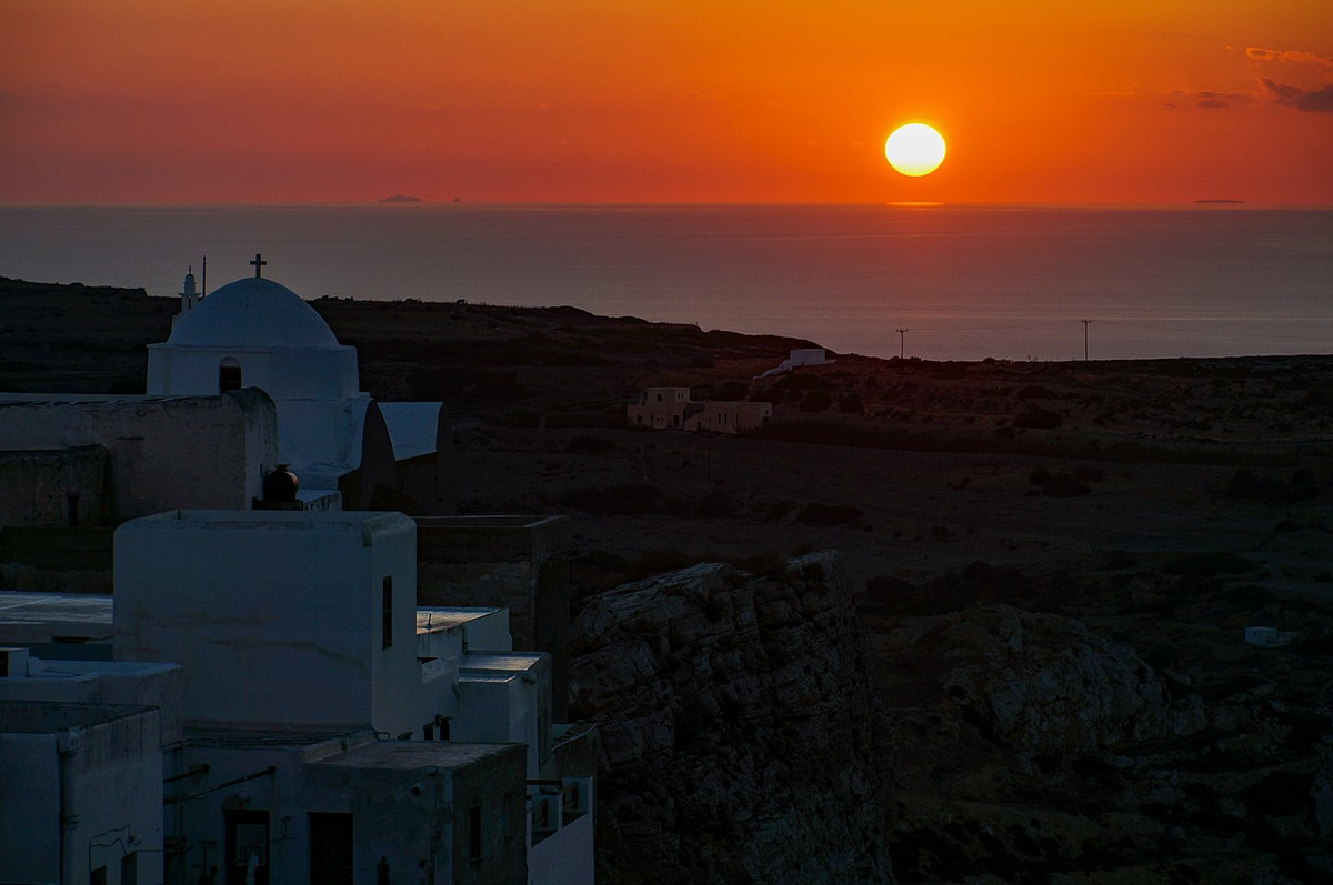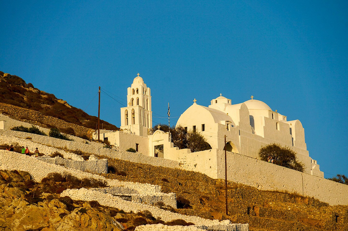 Above Hora, a white path zigzags across the hillside to a special attraction on Folegandros, the church of Panagia. As the church is one of the few examples of Aegean church architecture with three domes, don't miss the opportunity to visit it. Inside, a portable virgin icon is displayed, which is carried in a large procession through the two villages of the island on high holidays - an impressive ritual. And also the panorama from up here is phenomenal.