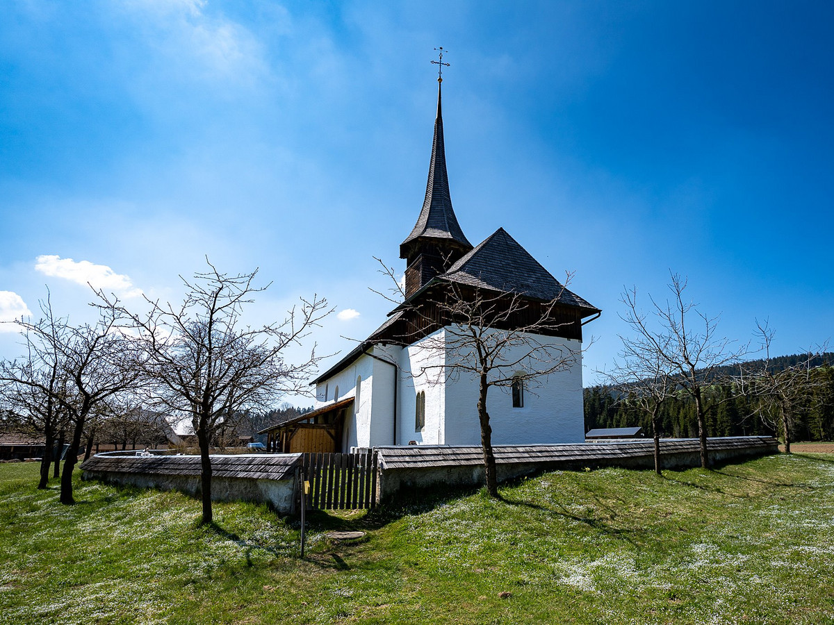 If you have to skip the detour to Schangnau due to time constraints, we recommend two more stops on our Emmental round trip. Above the village of Röthenbach stands the almost 1000-year-old Würzbrunnen Church, which was first mentioned in a letter from Pope Eugene III in 1148. In 1494, the church fell victim to a conflagration. It was rebuilt in the same year. A charred piece of wood in a niche of the northern outer wall is a reminder of this fire. The organ was built in 1785 and can probably still be heard at almost every wedding. The church became famous through the Gotthelf films, where the little church served as a film set, for example in the cult film Ueli der Knecht with the main actors Lilo Pulver and Hannes Schmidhauser.