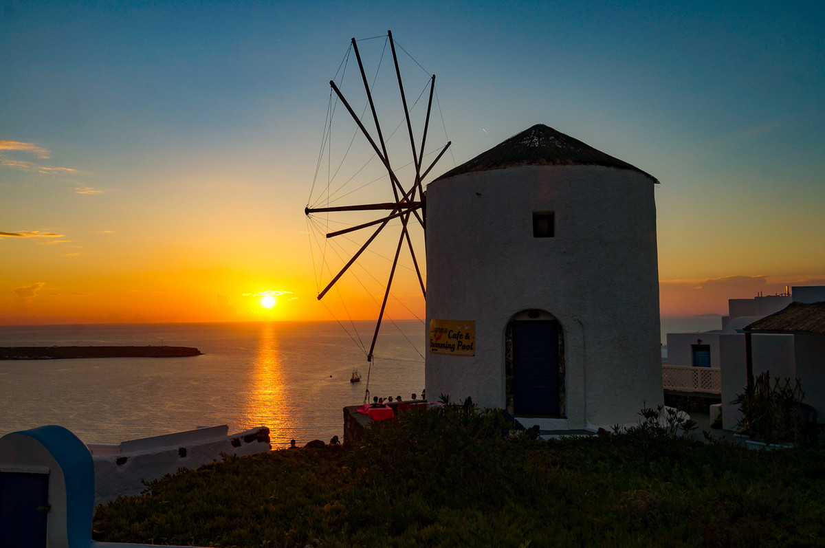 Oia is my favorite place. In the Caldera wall, the pretty hotels and cave dwellings are stacked on top of each other. The marble paved crater edge alley invites to stroll. The village centre in the very west is characterised by old captain's houses and from the castle ruins at the outermost edge of the village the view reaches far into the Aegean Sea. A great place to enjoy a cool drink at sunset.