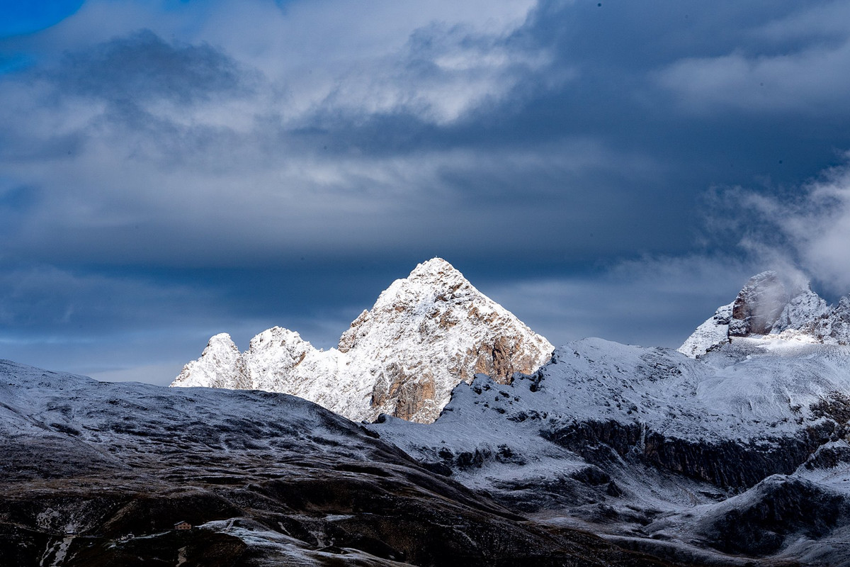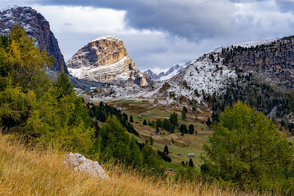 A second beautiful round tour also starts on the doorstep with a trip through the lovely Val Badia. Incidentally, German, Italian and Ladin are spoken in this trilingual cultural region. High above the village of St. Martin in Thurn, the ancient walls of the Ciastel de Tor have been transformed into an interactive museum that sheds light on the history and culture of the local population, such as Ladin, which goes back to a spoken folk Latin (equivalent to the Rhaeto-Romanic spoken in Switzerland), as well as several legends that have their origins in the unique mountain landscape of the Dolomites. Having arrived at the bottom of the Val Badia, we turn off into the Val Pusteria and to the picturesque Braies Lake, one of the most visited places in the Dolomites, which can be hiked around in just under an hour and photographed from all angles. The journey continues via Dobbiaco into the Höhlensteintal valley, where you will get your first glimpse of the three famous peaks at the Drei-Zinnenblick vantage point. If you want to get even closer to the monuments, use the toll road up to the Auronzo Hut. From here the classic circular route "Giro delle Tre Cime" starts, which leads around the Small, Great and Western Peaks in 3.5 hours. After a little refreshment at Lago d'Antorno, the ride leads past Lake Misurina and over the Passo Tre Croci to fashionable Cortina d'Ampezzo, where you might consider buying a souvenir or two for your loved ones back home. If you haven't had your fill of the breathtaking panoramas yet, I recommend taking the cable car on the way back over the Falzarego pass near the pass to get to the almost 2800m high Lagazuoi mountain in three minutes.