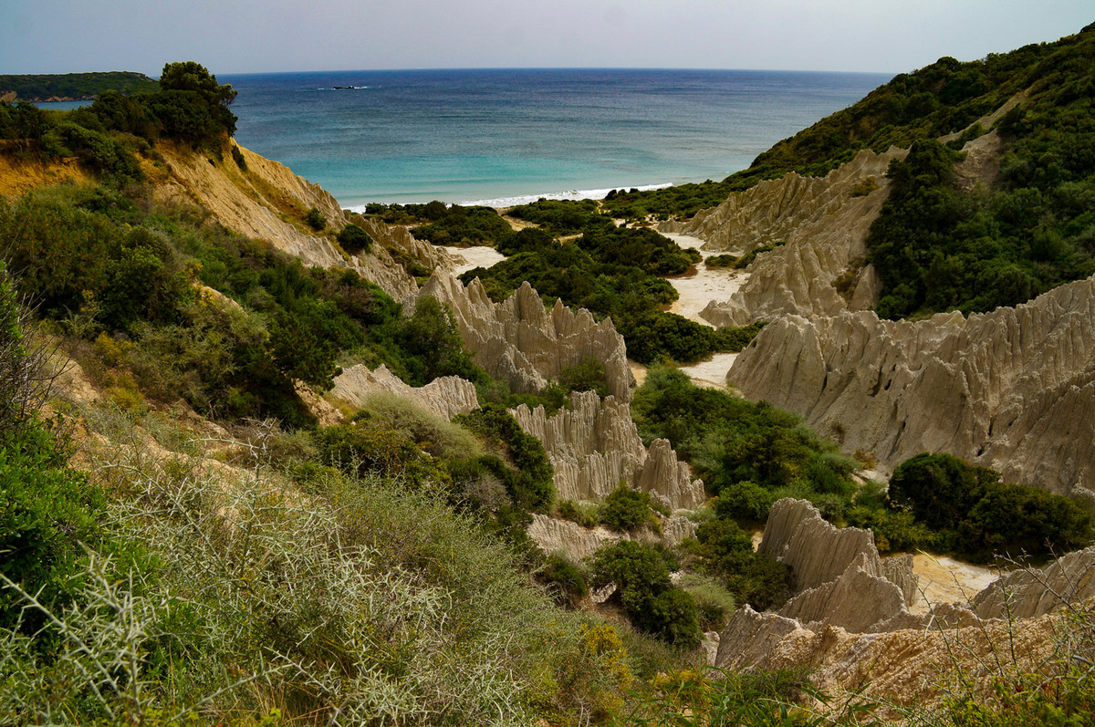 Zakynthos is with an area of about 408 km² after Corfu and Kefalonia the third largest and southernmost of the larger Ionian islands. In 1953 the island's capital of the same name was almost completely destroyed by an earthquake and a conflagration. In the municipal art museum a model of the city stands before this disaster. Two other museums belong to the sights of the city: the new Byzantine Museum with important works of art of the epoch, as well as the museum and mausoleum of the national poets Solomos and Kalvos. The tourists and locals - myself included - prefer to stay on the beautiful beaches. There are many small, slightly sloping beaches, which makes the island particularly attractive for family holidays. Kalamaki, for example, offers fine white sandy beaches and dunes, but also cliffs. Porto Zorro is also known for cliff diving. Snorkelers and divers like to explore the underwater world there. Surfers prefer the northeast coast. The beaches of the west coast are often only accessible by waterways, which is why they are not overpopulated even in the high season. There is also one of my two favourite places of the island: the Navagio bay with the shipwreck of Zakynthos that is only accessible from the sea. The wreck of the coaster "Panagiotis" lies on a small beach, surrounded by up to 200 metres high, vertical rock walls, above which there is a small platform. It is the only vantage point that allows a view of the wreck from the land side and a rewarding day trip. The smuggler ship stranded in October 1980, when it suffered machine damage in stormy seas, pursued by the coast guard, and stranded without a driver with its illegal load of cigarettes in the bay formerly called "Agios Georgios". The crew of the ship was able to save themselves. Those who are already travelling in the north should also visit the blue grottos at Cape Skinari, which can be visited for little money with small boats. The water there reflects in different shades of blue. And a second place I like: On a short circular hike one reaches the Mizithres rock at the southwestern coast of the island near the village Keri.