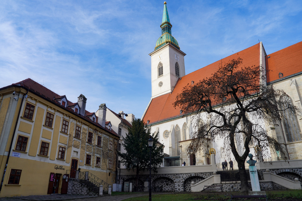 A narrow path leads down to the historic, beautifully restored old town and the city's largest church. Located on the western edge, the impressive St. Martin's Cathedral, built in the 14th and 15th centuries, cannot be missed. The Gothic cathedral with several chapels attracts tens of visitors to Bratislava every day. The highlight of the three-nave church is the 150 kg copy of the Hungarian royal crown that adorns the 85-metre-high spire. In addition, the 2.5 tonne bell, which was cast in 1675, is one of the most valuable bells in the whole of Europe.