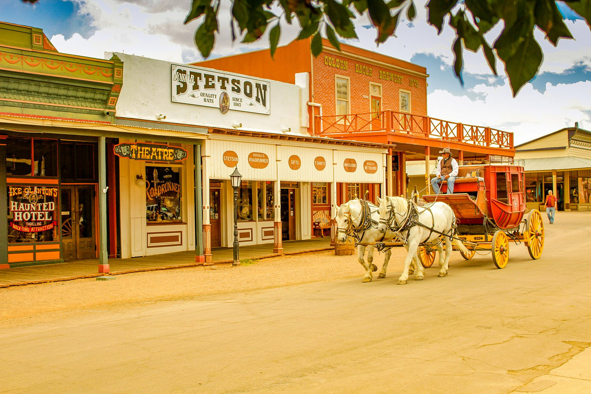 Our road trip starts just before the New Mexico border, in the middle of the Wild West. Welcome to Tombstone, a western town with the inviting epithet "The Town Too Tough To Die". Once Wyatt Earp and Billy the Kid called the shots here, today it's the numerous tourists. The town, which essentially consists of the traffic-free main street Allen Street, exudes pure Wild West feeling with its numerous saloons and wooden houses. At the O.K. Corral, the heroes of yesteryear stand in wax and ready to fire. The historic shoot-out is revived several times a day. In the Historama next door, a multimedia show tells the story of the place. In the evening, a visit to a saloon is worthwhile, pure Wild West, preferably Big Nose Kate's.