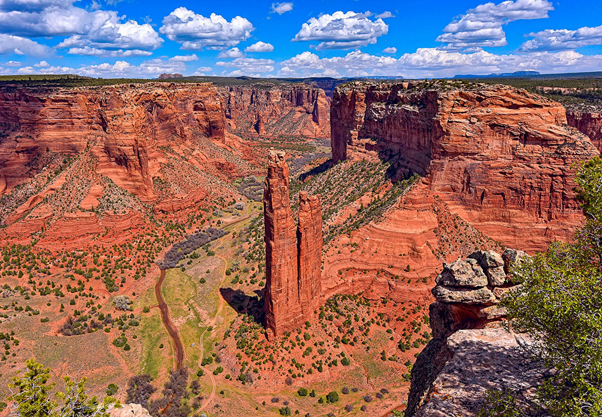 Canyon de Chelly National Monument is located about an hour's drive northeast of the Painted Desert, right on the Utah state border. Canyon de Chelly guarantees you a spectacular panorama and fascinating insights into the traditional way of life of the Native Americans. The dramatic sandstone canyon is located on the reservation land of the Navajo Nation and houses centuries-old petroglyphs and dwellings of the early Pueblo culture as well as campsites and carvings of tribes from the Archaic period who lived in the canyon thousands of years ago. The land has been home to the Navajos for over 300 years. The minimum programme of a visit is to drive down the South Rim Road to numerous viewpoints along the canyon. Don't miss the short trail to Spider Rock Overlook, a photogenic rock outcrop.