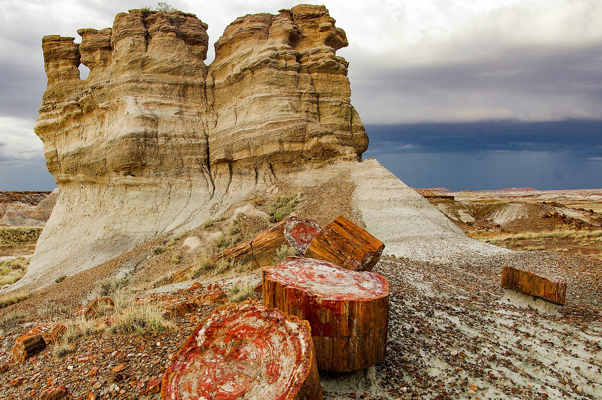 Instead of heading straight for the Grand Canyon, it is worth taking a detour through eastern Arizona. Follow Interstate 40 to Holbrook before you reach the next national park. In Petrified Forest National Park you will find the world's largest and most colourful concentration of petrified wood. Old tree trunks turned to stone 200 million years ago through erosion and make a bizarre picture. First visit the southern part of the park with its high density of colourful woods and later enjoy the sunset at a viewpoint in the northern area with a far-reaching view over the reddish-brown "badlands" of the Painted Desert. The film on the formation of the fossils at the Painted Desert Visitor Centre is very informative.