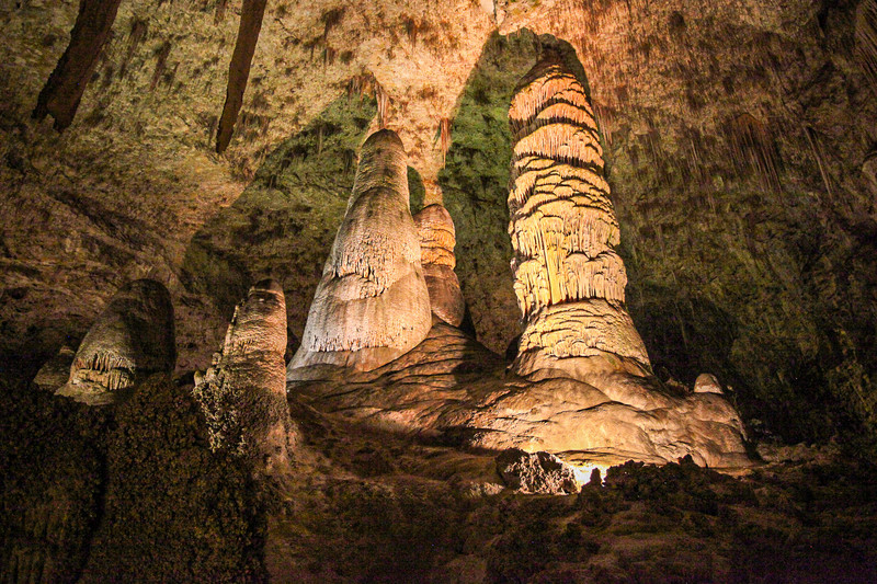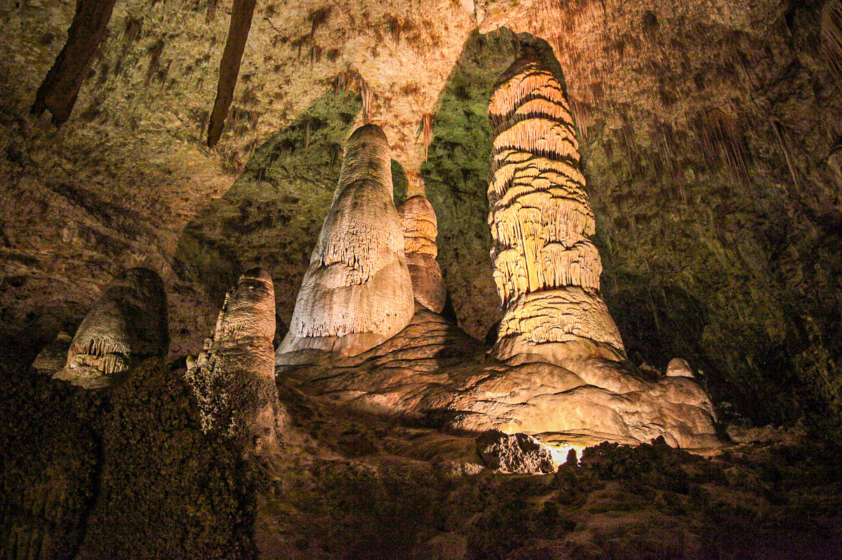 Among New Mexico's most significant natural monuments, in addition to the white gypsum dunes of Carlsbad Caverns National Park, is a powerful underground realm of stalagmites and stalactites, one of the most beautiful cave systems in the United States. Modern elevator installations, capable of transporting up to 1400 people per hour, take visitors into the moist, consistently 13-degree cool world of shadows at a depth of 250 meters. There, it's not so much the temperature change that takes your breath away as it is the enchanting splendor of the underworld. The 2 km standard route leads to the Hall of Giants, so named because of two stalagmites, 20 and 13 meters high. From there, the Big Room offers the best of the Carlsbad Caverns. The dimensions of this immense hall only become truly understandable when you walk a little on the dimly lit paths. The Big Room measures 550 meters long, 335 meters wide, and 78 meters high, providing space for several football fields as well as the full size of the Washington Capitol.