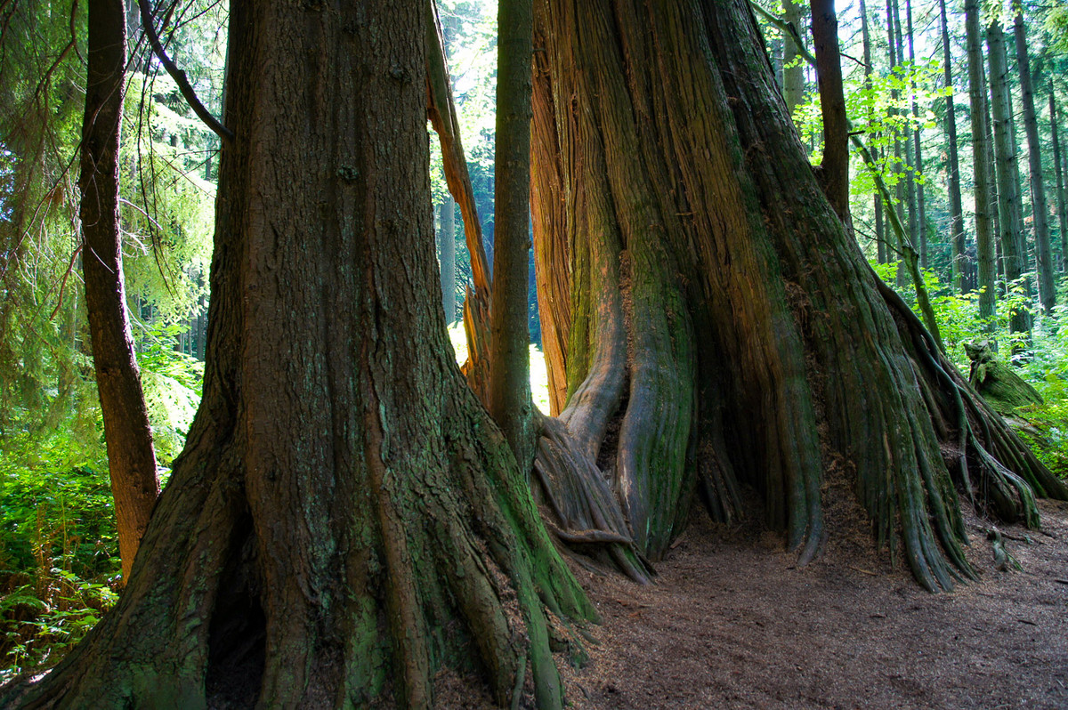The short ferry trip over to Vancouver Island is highly recommended. On the way to Telegraph Cove in the very north of the 500km long island it is worth a detour to Tofino. Halfway there is the Park Cathedral Grove and its spectacular Giant Trees, some of the oldest trees in British Columbia, including centuries-old Douglas firs with a trunk diameter of more than 3 metres. One can try to embrace such a giant...