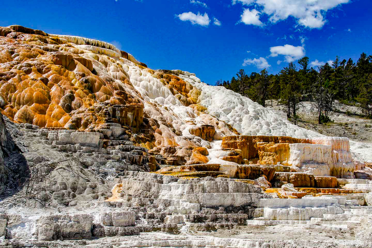 In the far north, another thermal sensation attracts visitors: the Mammoth Hot Springs. At the northernmost point of the national park, near the northern entrance and directly on the border to the US state of Montana, hot springs let their warm water of about 70 °Celsius glide over the terraces. The water contains an above-average proportion of limestone and minerals, which precipitate at the source and deposit in the form of terraces. Here, too, plank paths have been laid out to discover the unique landscape. And if you feel even more like spending time actively - how about a kayak tour or a guided fishing tour? The countless brooks, rivers and lakes in a fantastic landscape invite you to do so.