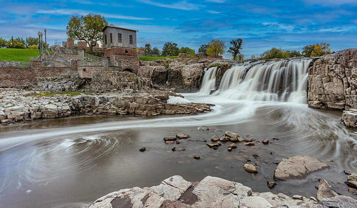 Begin your journey in southeast Sioux Falls. South Dakota's largest city charms with parks, galleries and museums. In the historic downtown, around Phillips Avenue, you'll find the "Sculpture Walk," an ever-growing collection of more than 60 sculptures. The absolute highlight in Sioux Falls are the waterfalls in the heart of Falls Park. Over several steps the Big Sioux River rushes over pink quartzite rock. The impressive falls can be observed from various vantage points.