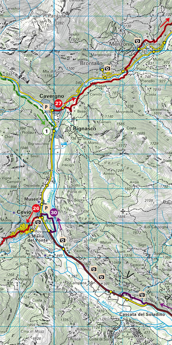 In the Kümmerly+Frey hiking tour map of Maggia, Verzasca at a scale of 1:50,000, you will find the most beautiful hiking routes in the region compiled for you.
