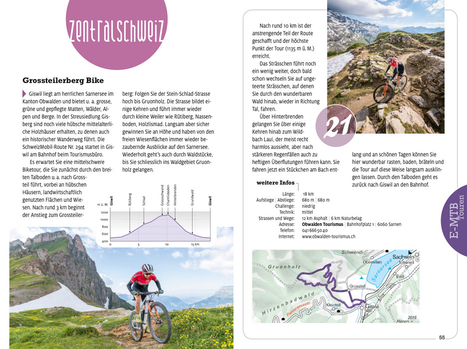 Im Kümmerly+Frey Freizeitführer Erlebnis Schweiz - E-Mountainbike Touren finden Sie passende Tourenvorschläge mit Tipps und Empfehlungen für Ihr nächstes Bikeabenteuer.