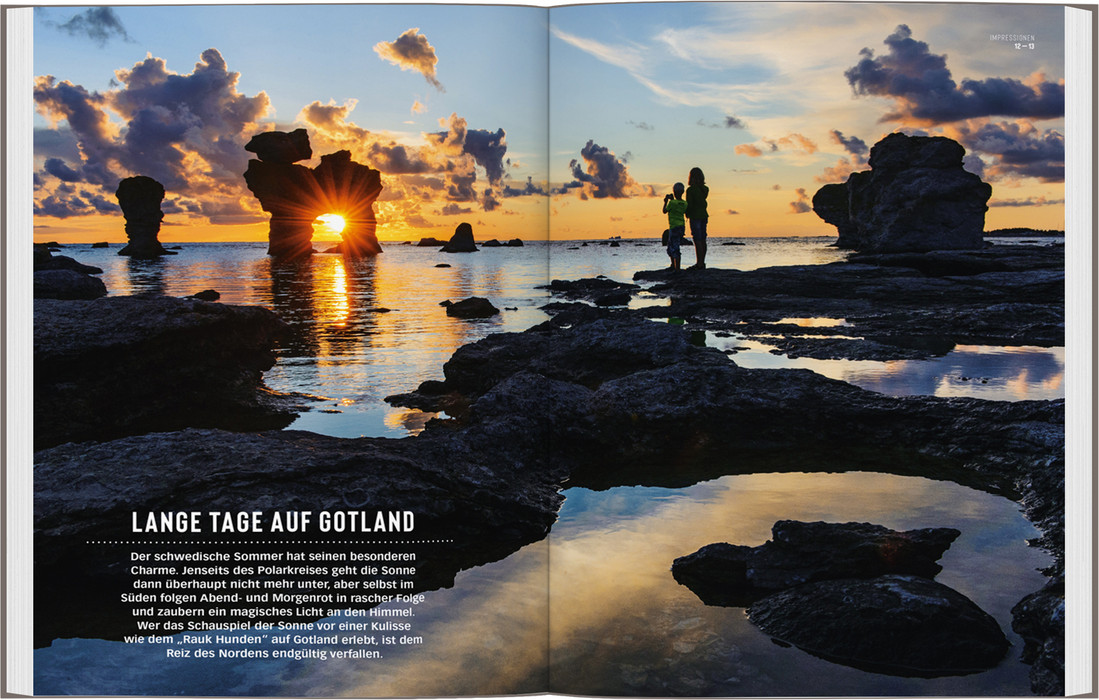 Stockholm, eine Hauptstadt zwischen Meer und See. Auf vierzehn Inseln hat man die Stadt erbaut. Trotzdem können die Stockholmer nicht genug bekommen von der Ostsee – besonders im Sommer drängt es sie hinaus in die Inselwelt der Schären oder weiter bis nach Gotland und Öland, die Sommerinseln Schwedens, wo Windmühlen und rote Holzhäuser, Schafherden und Buschwindröschen das Schwedenbild perfekt machen. Auch scheint nirgendwo sonst im Land die Sonne länger als hier. Und die Westküste? Nicht minder schön! Diese lockt mit kilometerlangen Sandstränden sowie kulinarischen Höhenflügen in Göteborg, aber auch mit kleineren Orten wie Fjällbacka und Smögen, die den ganzen Charme schwedischer Küstenstädtchen aufbieten. Ab September werden dort alle ein wenig „hummerverrückt“.