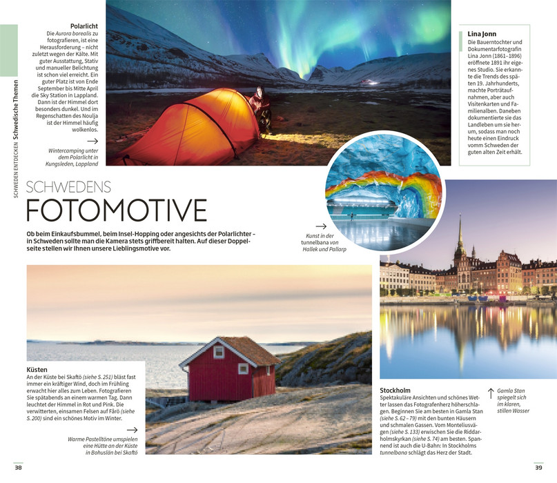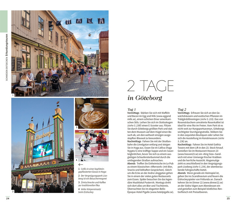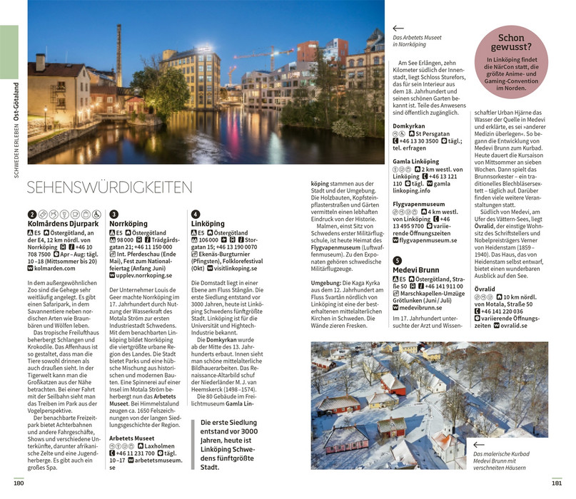 Durch die Gassen von Stockholms Gamla Stan spazieren, spektakuläre Polarlichter in Lappland bestaunen oder die faszinierende Inselwelt der Schären entdecken – Schweden ist einfach magisch. Mit ausführlichem Expertenwissen, den berühmten 3-D-Aufrisszeichnungen und über 350 stimmungsvollen Fotos können Sie das Land Ihrer Träume hautnah erleben. Dieser Reiseführer Schweden ist der ultimative Begleiter für alle Kulturinteressierten! 1. Unverwechselbar visuelles Konzept. 2. Inspirierende Fotos versetzen direkt ans Reiseziel. 3. Einzigartige 3-D-Aufrisszeichnungen der spannendsten Bauwerke und gezeichnete Spaziergänge durch die schönsten Stadtteile. 4. Atmosphärische Themenseiten zum Reiseziel: von Kultur bis Genuss. 5. Hohe Benutzerfreundlichkeit durch klare Struktur. 6. Alle Highlights und Sehenswürdigkeiten Region für Region. 7. Detaillierte Karten mit allen vor Ort wichtigen Infos. 8. Alles Wichtige für die Reiseplanung kompakt. 9. Mehr Reisekomfort durch geringeres Gewicht und hochwertige Verarbeitung. 10. Vis-à-Vis bietet in höchster Qualität, was Reisende über Kulturgeschichte und Lebensart wissen wollen. - Lassen Sie sich mit dem praktischen und informativen Reiseführer zu den schönsten Erlebnissen, Attraktionen und Sehenswürdigkeiten Schwedens führen – ob eine Nacht im Icehotel in Lappland verbringen, die samische Kultur und Rentierherden in Jukkasjärvi entdecken oder eines der größten Mittsommerfeste Schwedens in Leksand feiern. - Die fabelhaftesten Gegenden stellen sich Ihnen im Reiseführer Schweden in ihrer gesamten Pracht vor – mit fundierten und qualitativen Inhalten sowie unvergesslichen Highlights aus Kultur und Alltag. Das drittgrößte Land Europas präsentiert sich von Svealand über Götaland, Gotland, Göteborg bis Norrland. Natürlich wird auch die Hauptstadt Stockholm in einem Extrakapitel ausführlich vorgestellt. - Egal ob für ein Wochenende, eine Woche oder länger – eine Reise nach Schweden lohnt sich! Für alle, die nur wenig Zeit haben, das Land zu erkunden, gibt es facettenreiche Tipps, um das Beste aus ihrem Trip herauszuholen. Zahlreiche Routenvorschläge helfen, die Zeit optimal zu nutzen und möglichst viele Highlights in Stockholm und ganz Schweden zu entdecken. Erfahren Sie beispielsweise, wie man am besten 7 Tage in Südschweden gestalten könnte oder wie 2 Tage in Göteborg oder Stockholm aussehen könnten. - Sensationelle 3-D-Aufrisszeichnungen bieten aus der Vogelperspektive ganz neue und einmalige Einblicke in Schwedens Sehenswürdigkeiten – zum Beispiel ins Königliche Schloss in Stockholm oder ins Gunnebo Slott in Västergötland. - Auf den bildgewaltigen Themenseiten des Schweden-Reiseführers stehen charakteristische Besonderheiten im Fokus. Erfahren Sie Wissenswertes über den schwedischen Lifestyle, die Architektur oder die schönsten Fotomotive. - Entlang beeindruckender Sehenswürdigkeiten spazieren und dabei alles Wichtige über Architektur, Kirchen, Museen oder Plätze erfahren: Handgezeichnete Spaziergänge nehmen Sie mit auf eine erlebnisreiche Route – zum Beispiel durch Västra Nordstan, das Zentrum der Hafenstadt Göteborg. Verschiedene Touren, wie beispielsweise die Bootstour am Dalsland Kanal, zeigen Ihnen spezielle Highlights der verschiedenen Regionen. - Von spektakulärer Natur über märchenhafte Schlösser und Burgen bis zu falunroten Schwedenhäusern: Atmosphärische Sehnsuchtsbilder wecken Ihr Fernweh! Dank der wunderschönen und faszinierenden Fotos bringt Sie dieser Schweden-Reiseführer gedanklich schon beim Durchblättern direkt ans Reiseziel. - Detaillierte, übersichtliche Karten ermöglichen es Ihnen, sich in den verschiedenen Regionen Schwedens zu orientieren. Ins Detail gehende Stadtpläne weisen bereits auf einen Blick den Weg zu Restaurants, Hotels, Shops oder Sehenswürdigkeiten. - Im Reiseführer Schweden finden Sie zusätzlich nützliche Informationen zu Themen wie Anreise, Gesundheit oder Mobilität vor Ort – und zwar übersichtlich auf einen Blick. - Ihr formschöner und hochwertiger Schweden-Reiseführer ist ein echtes Leichtgewicht und lässt sich deshalb prima mitnehmen.