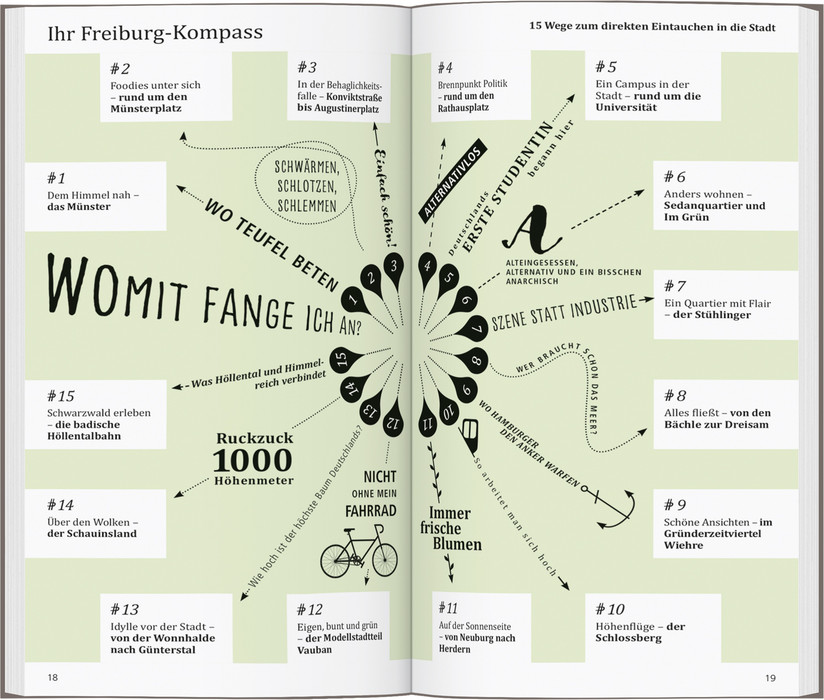 wunderfitzig, vorwärtsdenkend, bewegt, und nachhaltigkeitsverliebt – so wirbt Freiburg für sich, zu Recht! Mit den 15 »Direkt-Kapiteln« des Reiseführers führt Sie Alice Winter durch die quirlige Breisgaumetropole, die längst mehr ist als Gässle, Bächle, Münster, und lässt Sie die vielen Facetten der Stadt und ihrer Bewohner:innen aufspüren und erleben: zu Fuß, mit Fahrrad, Tram oder Gondel.