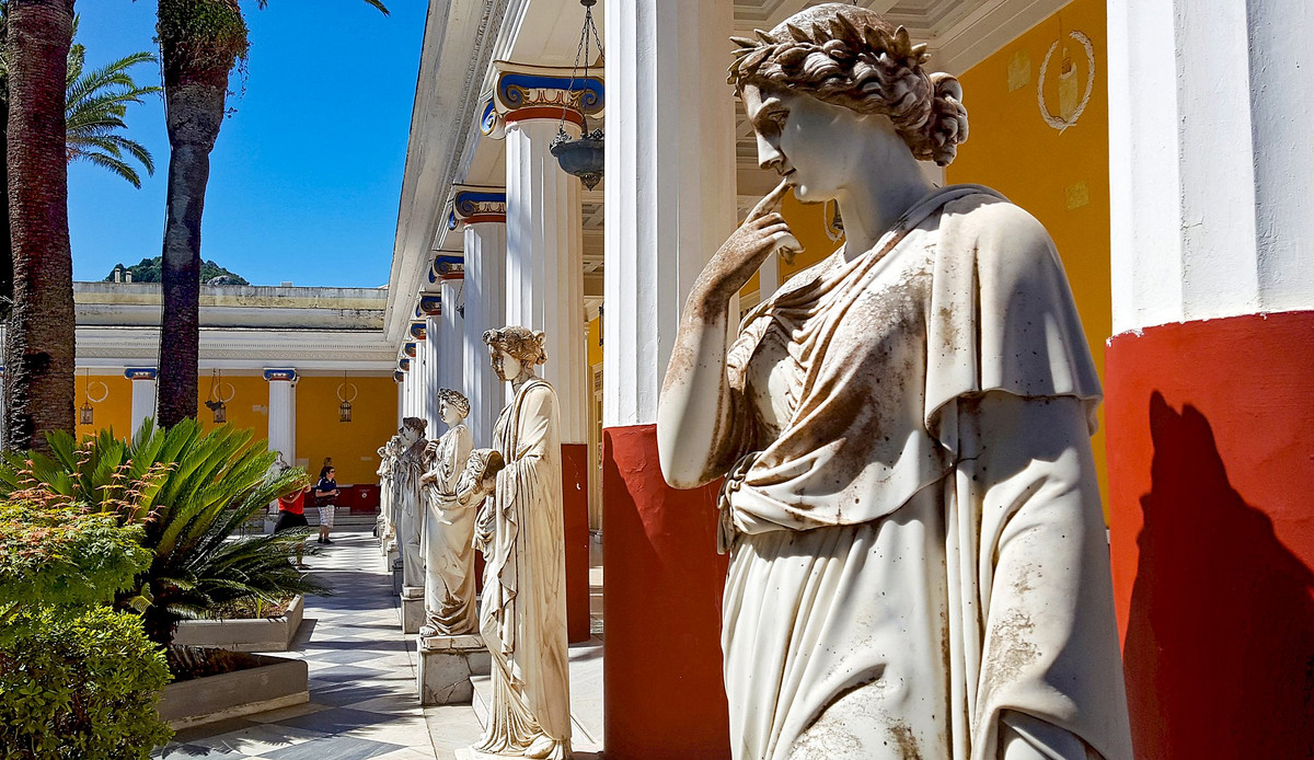 L'impératrice Sissi d'Autriche était d'ailleurs une grande fan de Corfou et a fait construire son propre palais dans le village de Gastouri, à une dizaine de kilomètres au sud-ouest de Kerkyra, la capitale de l'île, qui a été achevé en 1891. Sissi le nomme "Achilleion" et le décore d'œuvres d'art issues de la mythologie grecque. Neuf ans après sa mort, le Kaiser Wilhelm II a acheté le palais. Aujourd'hui, ce magnifique bâtiment est ouvert au public en tant que musée. Et encore plus de célébrités ont fait une fois escale à Corfou. En 1980/81, l'île a été le lieu de tournage du film "On a Deadly Mission", dans lequel Roger Moore incarne James Bond, l'agent le plus célèbre du monde. Les baies pittoresques, les falaises abruptes et les routes sinueuses constituaient des décors parfaits pour des scènes de poursuite palpitantes et des cascades pleines d'action. Bien qu'elle l'ait perdue de vue depuis longtemps, Sissi a également eu sa part du gâteau, puisque 007 a également rendu visite au jardin de son palais.