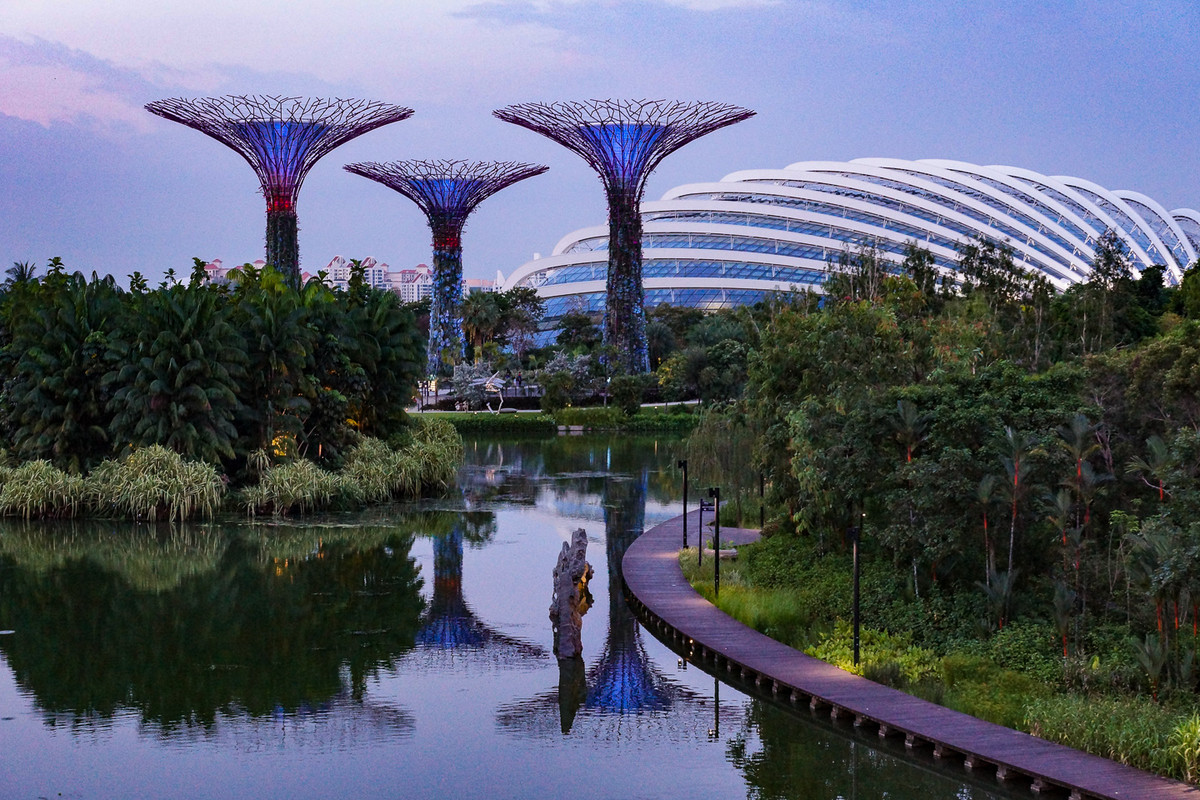 Von hier haben Sie auch nicht weit zu den „Gardens by the Bay“ – Land das künstlich aufgeschüttet wurde. Eine überraschende Kombination aus Baukunst und Natur machen diesen Park aus meiner Sicht zu einer der Hauptattraktionen von Singapur. Schlendern Sie auf idyllischen Spazierwegen durch eindrucksvoll angelegte Landschaften und bestaunen Sie die beiden gläsernen Biotope und die riesigen, künstlichen Bäume, die "Supertrees". Diese riesigen Stahlbäume, die 50 Meter hoch in den Himmel ragen, sind mit Hunderten von Orchideen-, Bromelien-, Farnen- und tropischen Blumenarten bewachsen. Falls Sie den Park gegen Abend besuchen, sollten Sie etwas länger bleiben und sich die eindrucksvolle Lichterschau Garden Rhapsody ansehen. Und fahren Sie mit dem Fahrstuhl einen der Bäume hoch und spazieren Sie in luftiger Höhe über den Skyway. Hier bietet sich Ihnen ein besonders beeindruckender Ausblick über Gardens by the Bay und die Stadt.